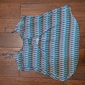 Maurices women's semi-sheer sleeveless top with a multicolor pattern size Large. Features adjustable straps.