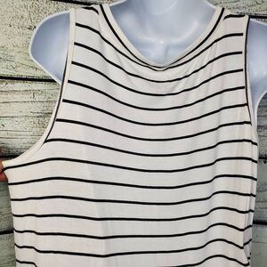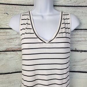 Maurices 24/7 Black White Stripe Sleeveless Tank Top Stretchy V-Neck Size Large
