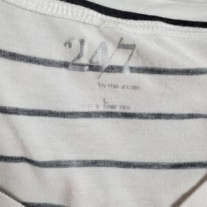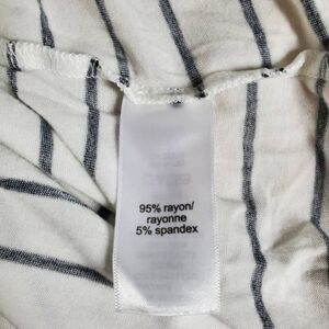 Comfy and stylish, this Maurices 24/7 tank top in size large features a black and white horizontal stripe pattern with a flattering V-neck front and higher scoop back. Made of super soft rayon-spandex blend for a breathable and flexible fit—perfect for layering or casual summer looks.