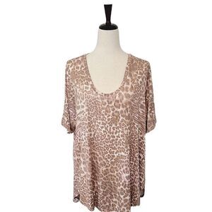 Maurices 24/7 Tan Leopard Print Scoop Neck High-Low Stretch Blouse