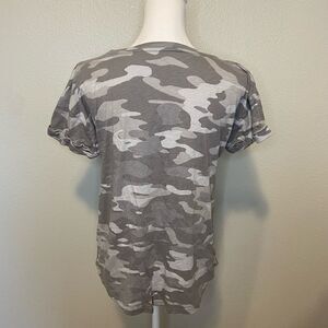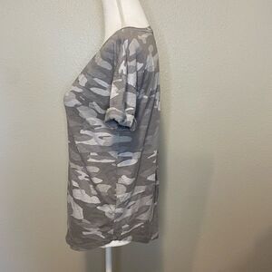 This darling camo tee is perfect for all seasons and goes great with jeans or shorts. It features a scoop next, cuffed sleeves and rounded hem. Size Small is slightly oversized for comfort. Great condition.