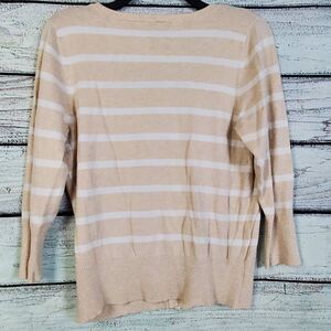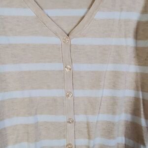 Maurices Beige & White Striped Button Front Cardigan Sweater Women’s Size L Ligh
