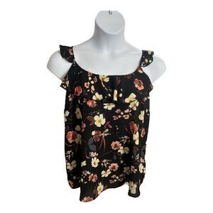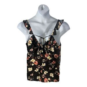 Maurices Black Pink Floral Blouse Size 0 Ruffle Neck Sleeveless Tie Pullover