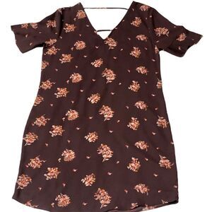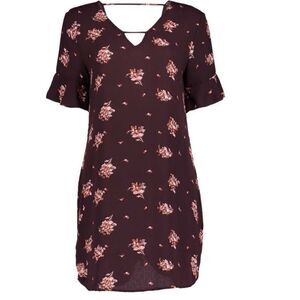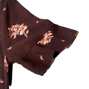 Choker cutout Neckline, Short Bell Sleeve, Floral Print and Curved Hem Line