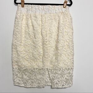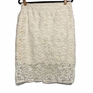 Maurices Cream Color Daisy lace Print Skirt. Size medium with measurements in the pictures. Gently used condition with no rips or stains. No fabric tag.