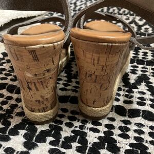 Maurices Jaden Taupe Faux Leather Buckle Strappy Corkscrew Wedge Size 8