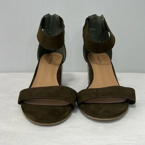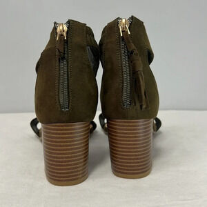 Maurice’s Khaki Suede Sandal Heels Ankle Strap back zip size 8