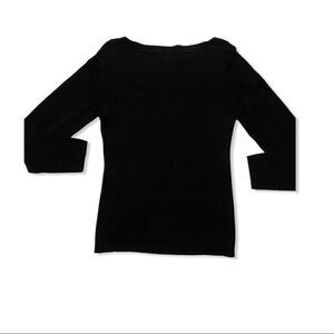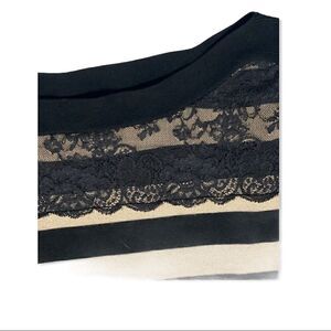 Beautiful black and Tan sweater with scalloped lace at the neck line. Dress up or down!