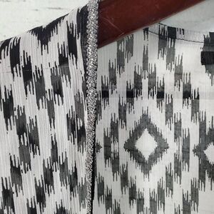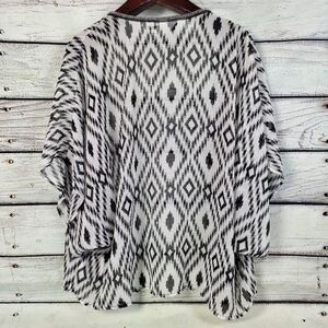 Maurices L/XL Black White Aztec Print Kimono Cardigan Beaded Trim Sheer Lightwei
