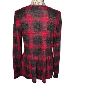 Maurices,M, plaid print ribbon accent, Henley button loop front peblum knit blouse NWT