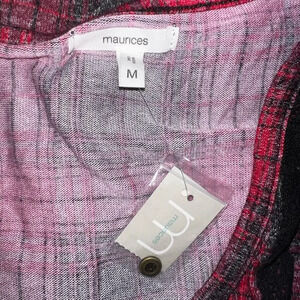 Maurices,M, plaid print ribbon accent, Henley peblum knit blouse NEW