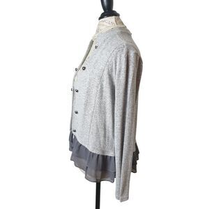 Maurices Open Front Knit Cardigan M Gray Heathered Ruffled Hem Coquette Fairy