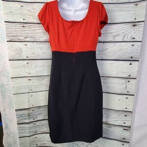 Maurices Red Black Colorblock Sheath Dress 7/8 Cap Sleeve Back Zip Business Casu