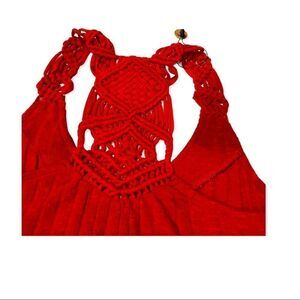 NWT! Maurice's Lightweight and comfortable ribbed knit fabric, solid Red, Macramé Racer Back, Detail button down front shirttail with relaxed hem!