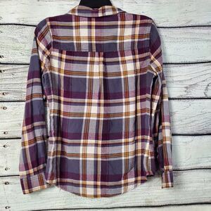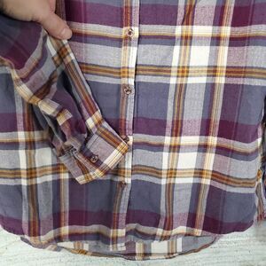 Maurices Small Plaid Button Down Shirt Purple Mustard Gray Long Sleeve Cotton Bl