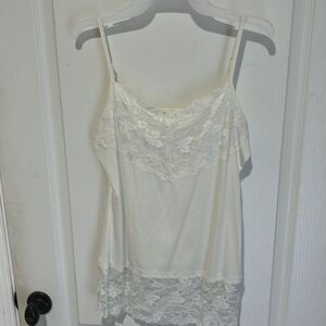 Excellent condition. No flaws. Size L. Approx measurements across chest 17” length 37” sheer lace band 5” Off white color.