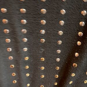 Black 3 1/4 sleeve knit sweater with silver, gray and black bling. Looks great for casual style with pair of jeans or can be dressed up for a more sophisticated look! Polyester/rayon/ spandex blend. Wash inside out. Missing one gem-see photo