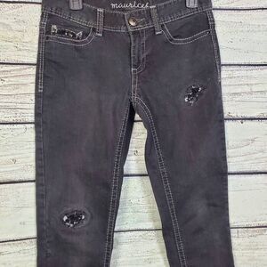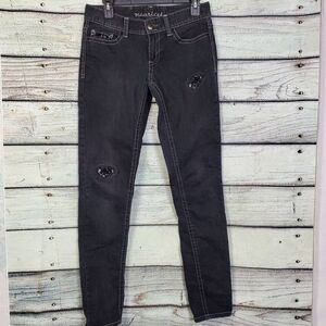 Maurices Women’s Black Skinny Jeans Size Small Sequin Distressed Stretch Denim