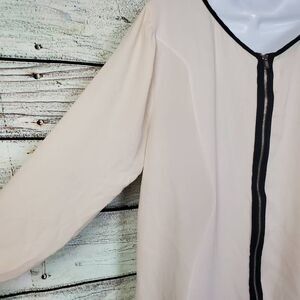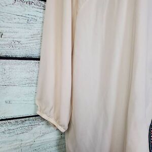 Maurices Women’s Boho Embroidered Peasant Blouse Size L Beige Long Sleeve Lightw