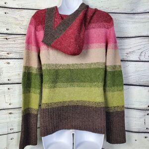 Maurices Women’s L Striped Knit Sweater Hoodie Pullover Wool Blend