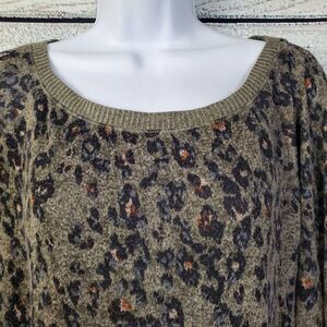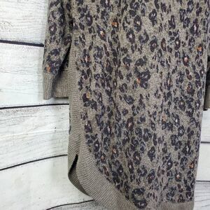 Maurices Women's Large Olive Green Leopard Print High-Low Tunic Sweater 3/4 Slee