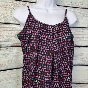 Maurices Women’s Sleeveless Blouson Tank Top Black Pink Triangle Print Size Smal