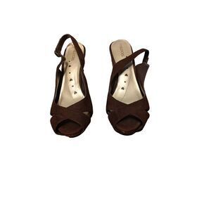 *Maurices chocolate brown, peep toe, sling back, pump sandals size 7M. In excellent nearly new condition.