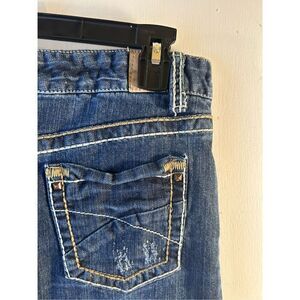 Maurice’s denim jean skirt 5/6 maxi. measures 15" across the waist, 37" long with 17" slit. There is a small stain on the back. It may come out. look at pictures.