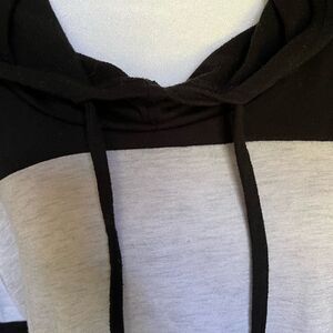 Cute excellent condition plus sized short sleeve hooded color block Maurice’s tee. Heather gray and black