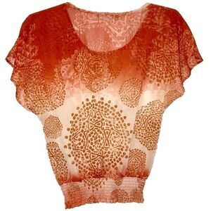 Pre-owned blouse in great condition. No rips or tears. See through blouse. Stretchable bottom
