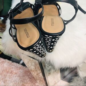 Black & white strap wedges, sz 10b, floral printed ▪️Heel: 4.75” Excellent pre-owned condition