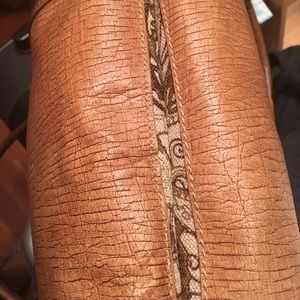 Gorgeous Mauro Burani bag crocodile embossed brown with gorgeous tapestry inside lining paisley brown beige and gold. Excellent condition