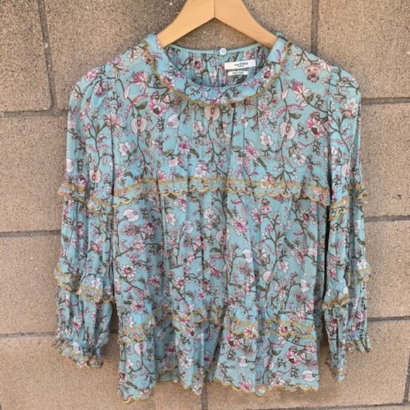 Mauryn Floral Embroidered Trim Ruffle Blouse - Size FR38 (US8)