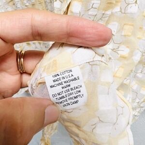 Maus & Hoffman Button Up Shirt Floral Embossed Yellow Whirte Womens