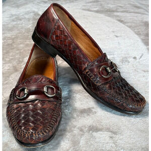 Maus & Hoffman Dark Brown Woven Leather Slip On Loafers Mens Size 10 Good condition - see pictures for wear.