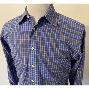 Maus & Hoffman Men's Sz Med Blue Plaid Cotton L/S Button Down Shirt Italy Made