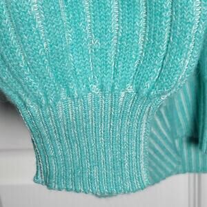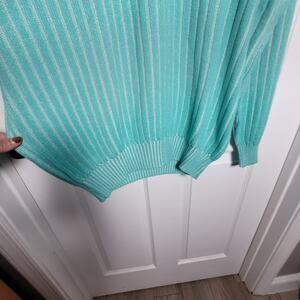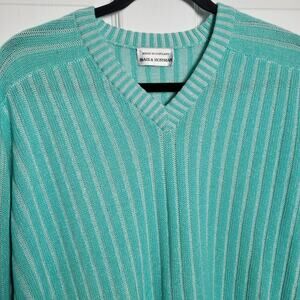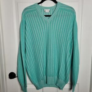 Maus & Hoffman Sweater Mens Large Aqua Striped V Neck Cashmere Cotton Scotland