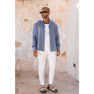 Mauvais Fiorano Relaxed Fit Textured Long Sleeved Shirt in Storm Sz 5XL