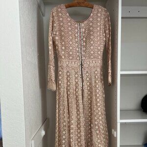 Top adorned in Lucknowi work. Comes with dupatta. Worn twice. Fits heights 5'0 (152cm) to 5'4" (162cm).