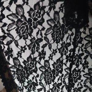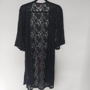 Mauve, black lace, mid length, quarter sleeve, open front topper. Excellent condition. NWT.