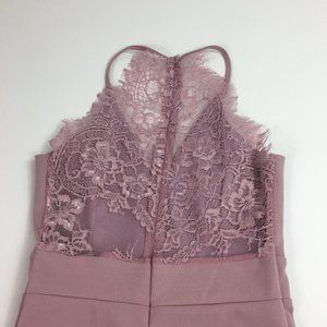 Mauve mini dress with lace detail on back. See photos for measurements.