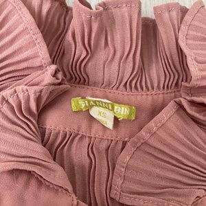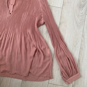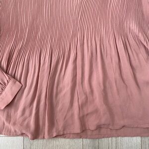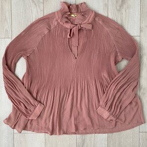 Mauve Dusty Pink Tie Front Long Sleeve Bow Pleated Blouse