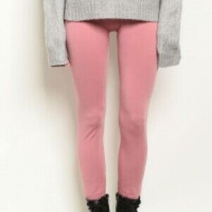 These are brand new mauve elastic high waist fleece lined leggings. Leggings with lots of stretch to them. Pair them up with your favorite sweater. spandex 15% polyester 85% Description: L: 34" W: 12" I.S.: 23"