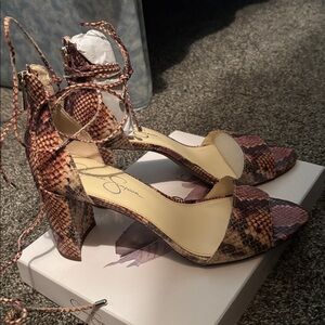 Mauve Jessica Simpson Snakeskin Heeled Sandals