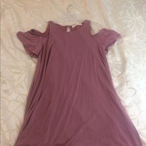 Super cute mini dress with Shoulder cut outs. Size tag is not attached. It is a size small. I bought it from Lizard Thicket. The brand is magnolia south. It is a mauve color (light dusty purple color). Excellent condition