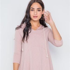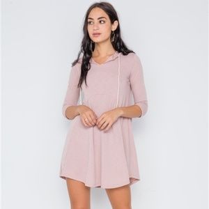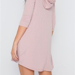 Mauve Pink 3/4Sleeve Knit Mini Dress with Hoodie!