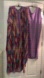 Vibrant kaftan dress set featuring a colorful pattern and a solid mauve slip. Fabric is Georgette. Beautiful flowing style that can be dressed up or down. Add a belt and wear it to a party; wear it to lounge by the pool. So many options. Very comfortable!