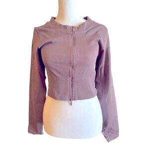 Mauve Ribbed Zip-Up Crop Top XL Long Sleeve Active Stretch Y2K Style