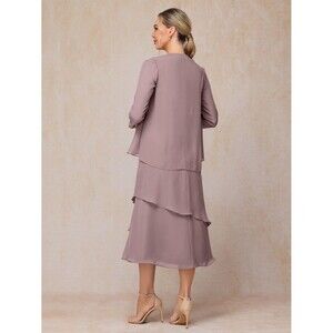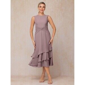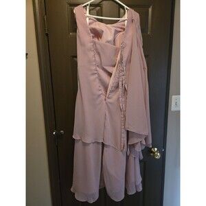 This is a beautiful pink chiffon mother of the bride dress with a zipper back, designed in a simple yet elegant style perfect for a wedding or formal occasion. Made in China, this gown in size 8 features a regular fit and is adorned with delicate chiffon material, exuding a sophisticated and timeless allure. Perfect for a mother looking for a stylish and comfortable outfit to make her daughter's special day even more memorable. The color is similar to a purplish-pink. Please look at the pictures without to model for a better idea of the color.