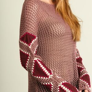Mauve Suede Patchwork Knit Sweater Top Size S M L